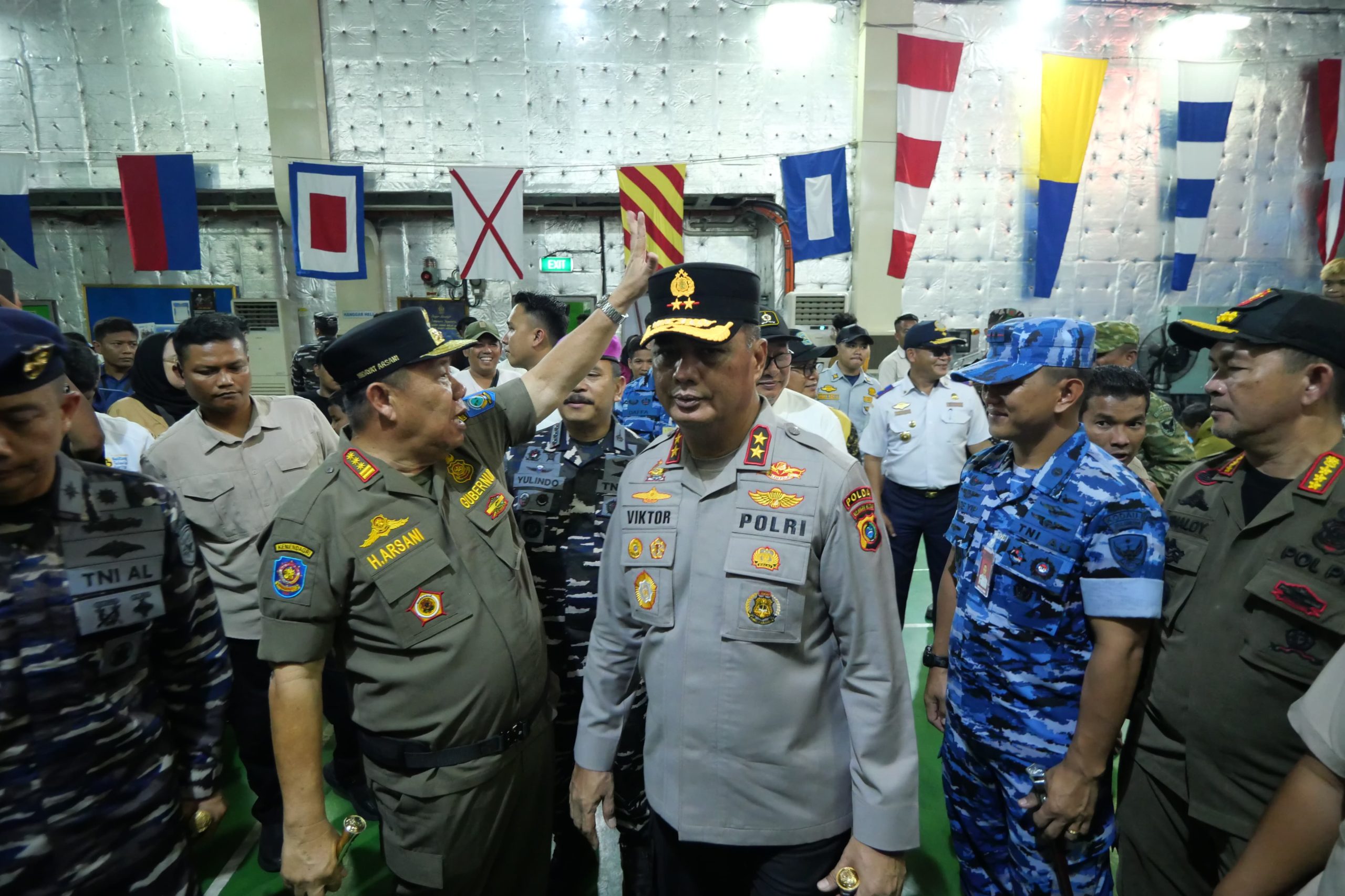 viralis.id, BELITUNG — Kapolda Kepulauan Bangka Belitung, Viktor T. Sihombing, menghadiri pelepasan keberangkatan program mudik gratis Lebaran 2026 yang akan menggunakan kapal perang TNI AL, KRI Semarang, di Pelabuhan Tanjung Batu, Desa Pegantungan, Kecamatan Badau, Kabupaten Belitung pada Jumat (27/3/2026).